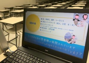 学生は学校には来ていませんが、オンラインで受講しています。 ご協力いただきました歯科医院様、ありがとうございました。